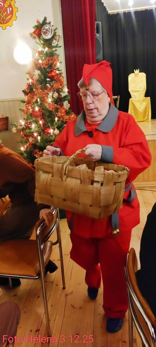 Mirja Suhonen lausui kirjoittamansa juhlakronikan, joka kertoi niistä kaikista ihanista ihmisistä, jotka olivat osallistuneet juhlan järjestämiseen. Kunniapuheenjohtaja Heli Heiskanen esitti joulutarinan.