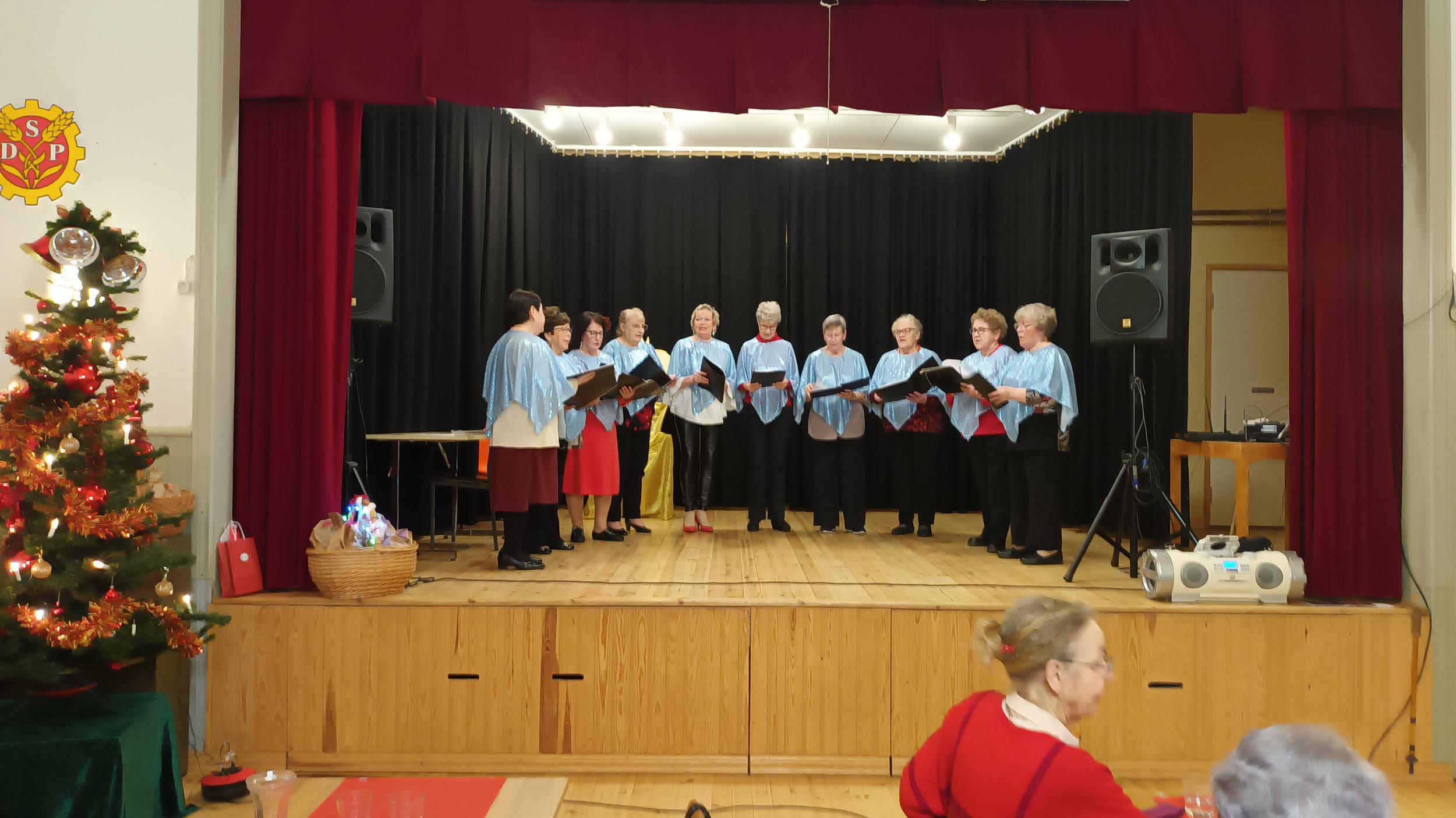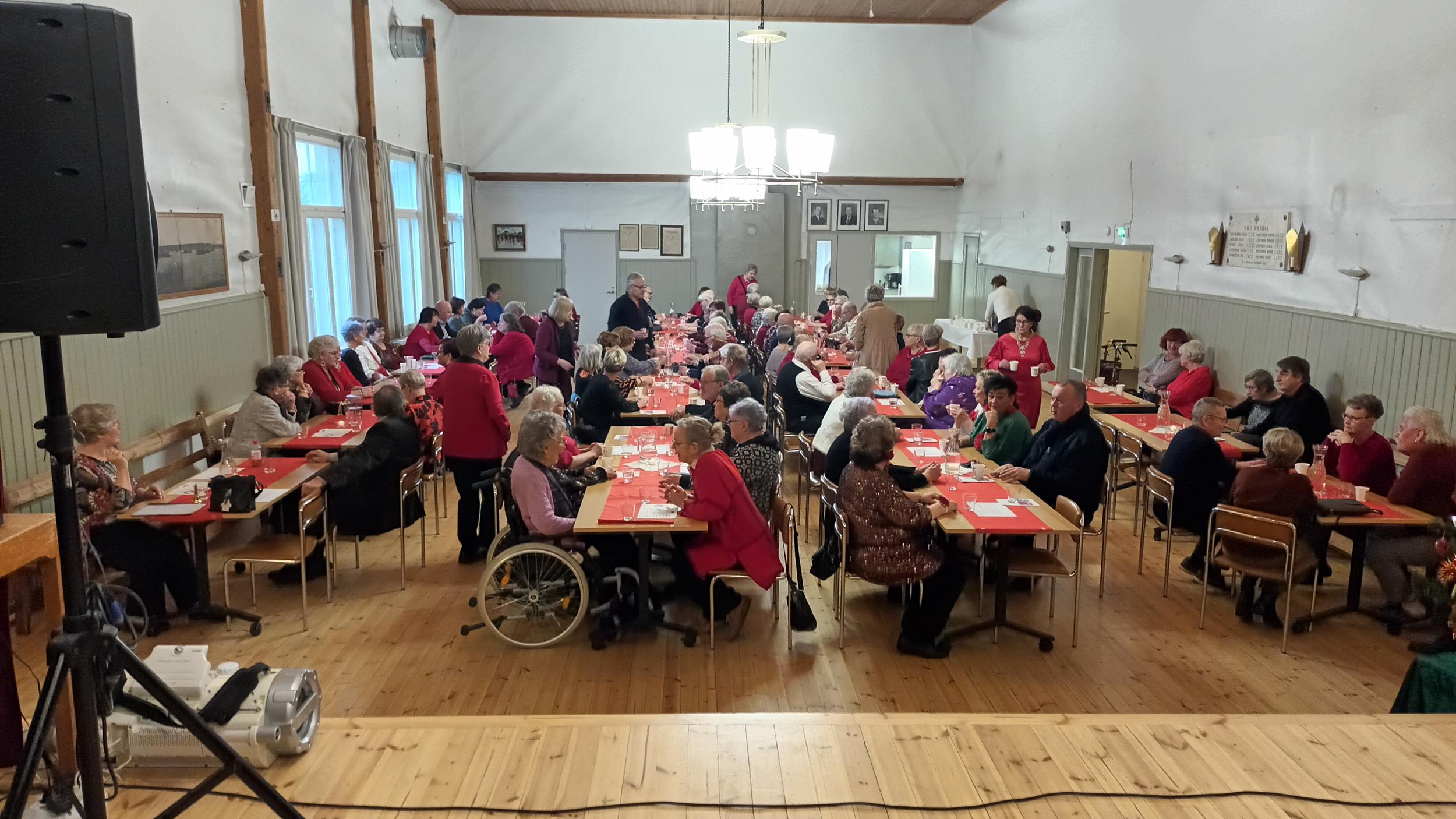 Joulujuhlaa vietimme 3.12. ensimmäistä kertaa Hamarin Työväentalolla, koska juhlaan osallistuvien määrä on lisääntynyt niin, ettemme olisi mahtuneet Seurakuntakeskukseen. Joulujuhlaan olikin saapunut yli sata yhdistyksemme jäsentä. Paikalla oli myös toimittajat Itäväylä-lehdestä. Juhla aloitettiin Puheenjohtajan tervetulotoivotuksen jälkeen maukkaalla jouluaterialla, jonka jälkeen oli ohjelmaosuus. Ohjelmaosuus alkoi yhteislaululla "No onkos tullut kesä" ja esilaulajina toimivat Seija Vahvelainen ja Lea Reinikka.