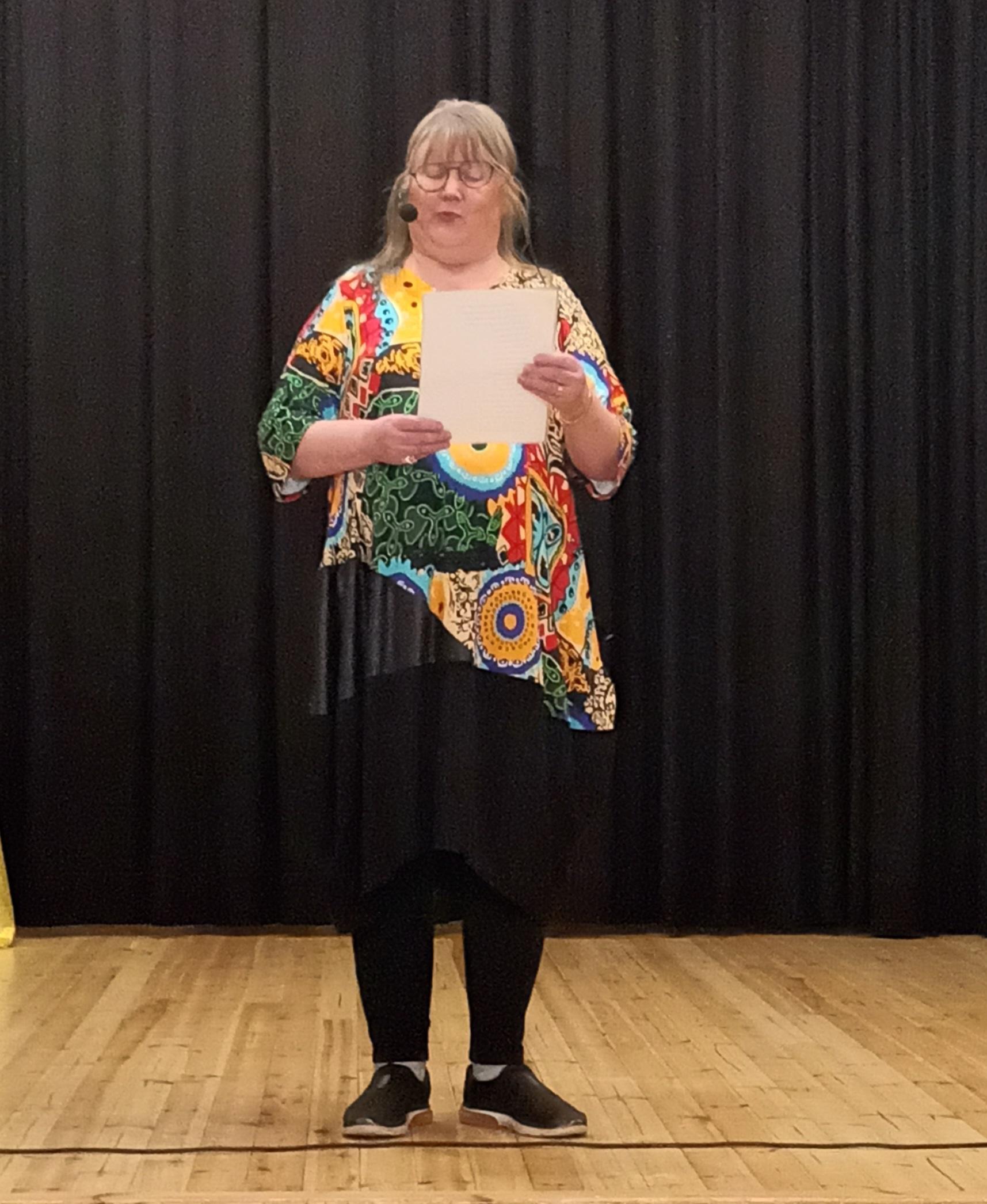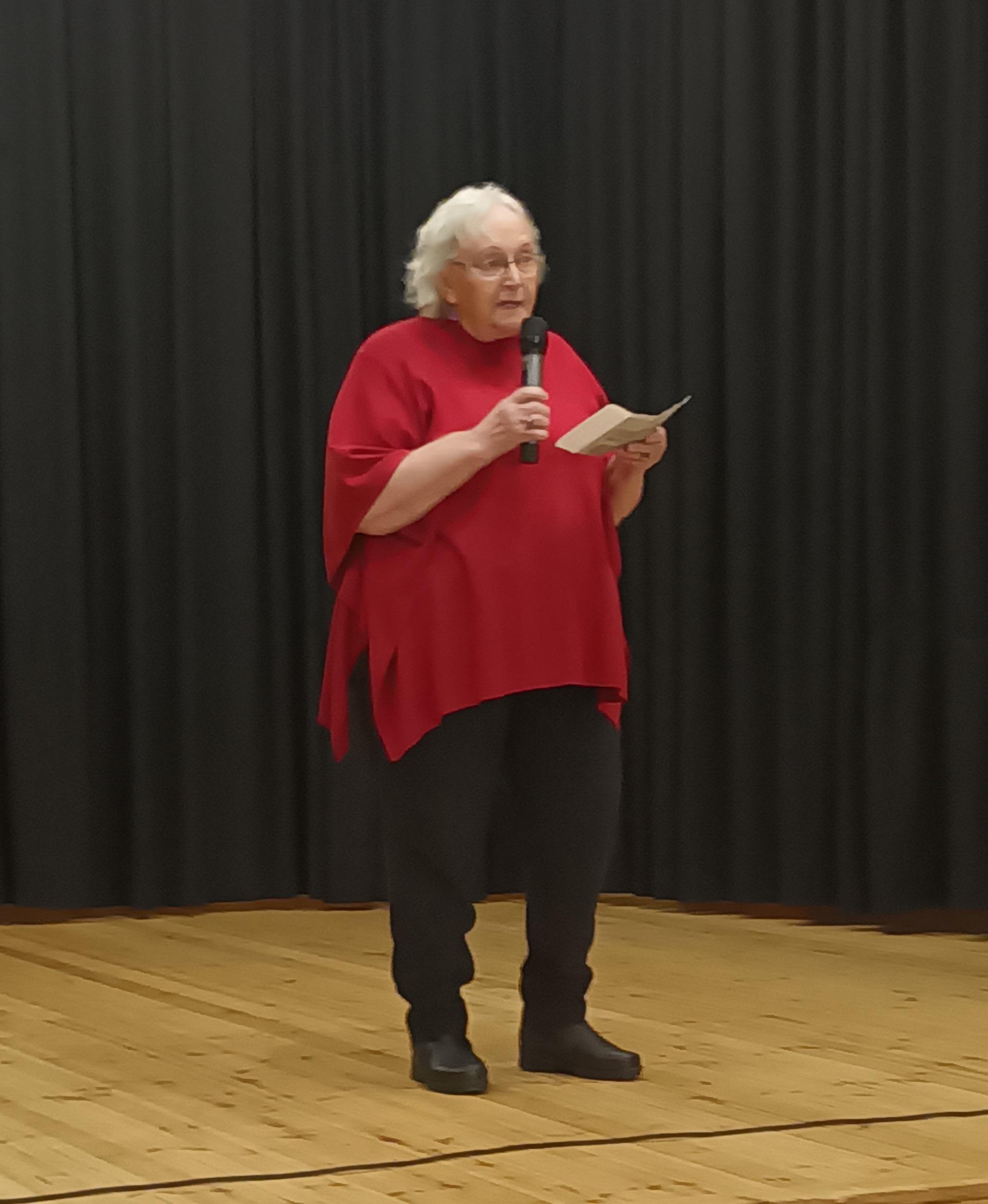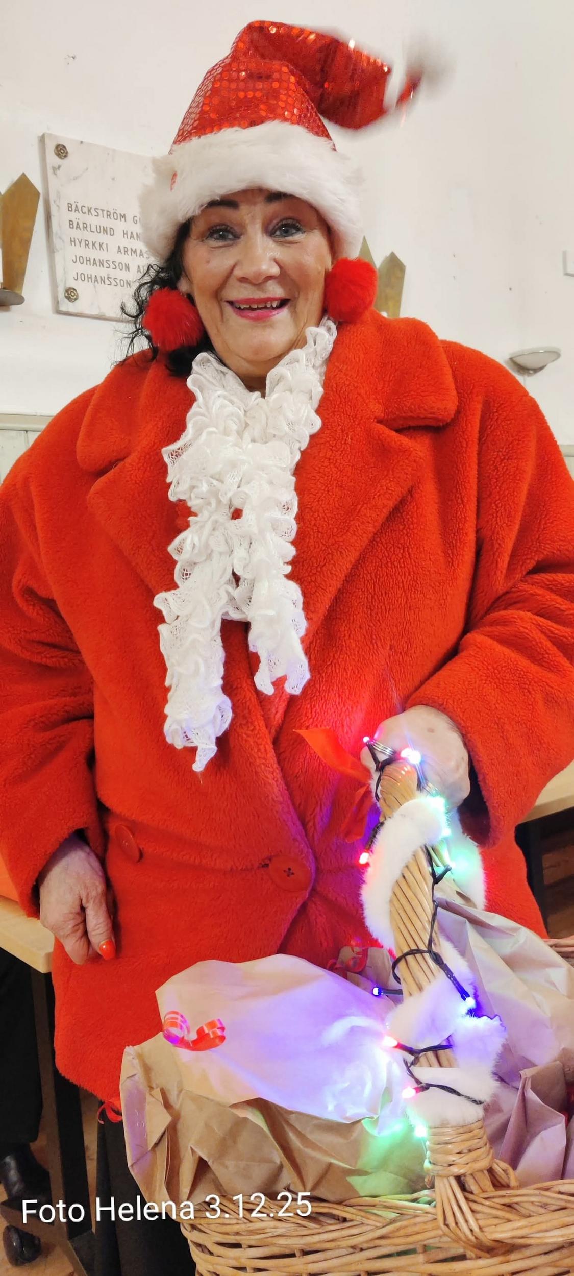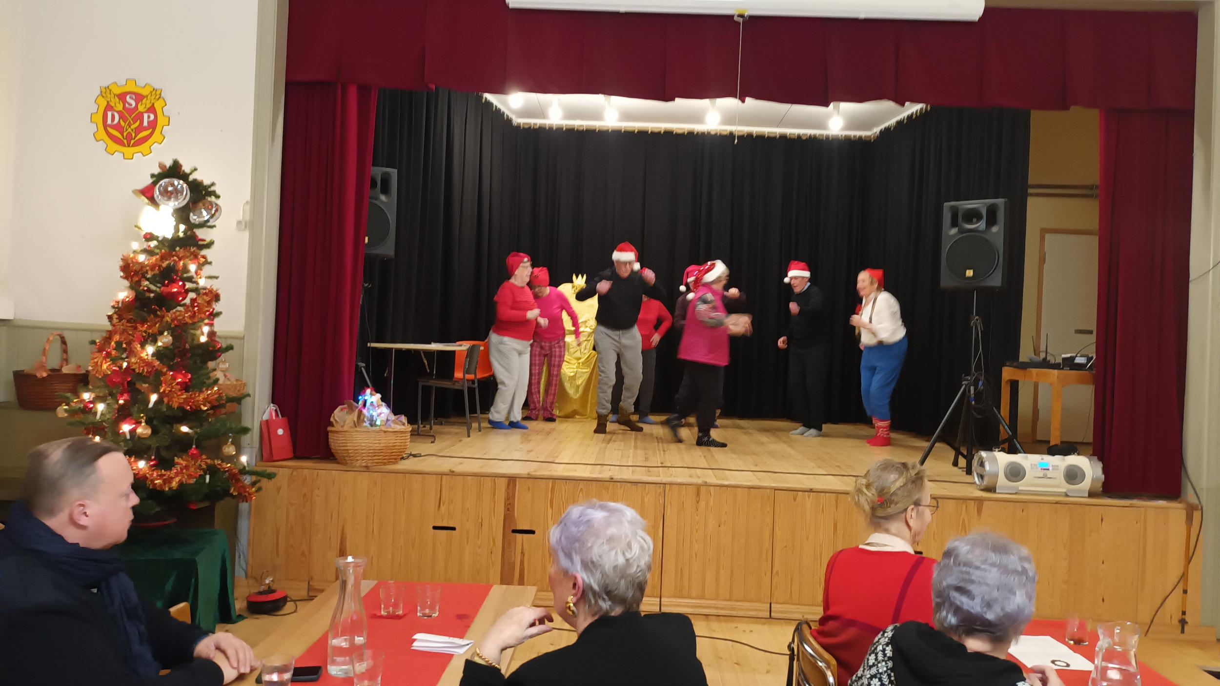 Mirja Suhonen lausui kirjoittamansa juhlakronikan, joka kertoi niistä kaikista ihanista ihmisistä, jotka olivat osallistuneet juhlan järjestämiseen. Kunniapuheenjohtaja Heli Heiskanen esitti joulutarinan.