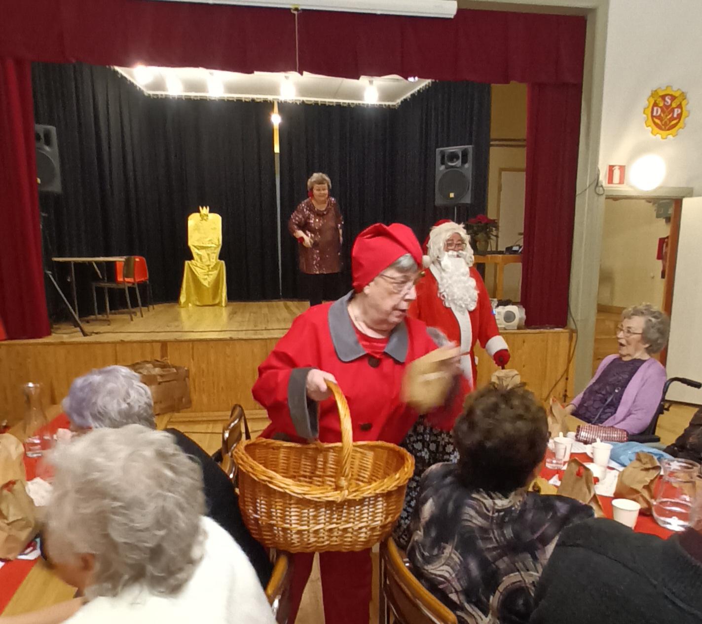 Juhlaan saapui myös joulupukki muorinsa ja tonttujen kanssa jakaen lahjat jokaiselle juhlijalle.